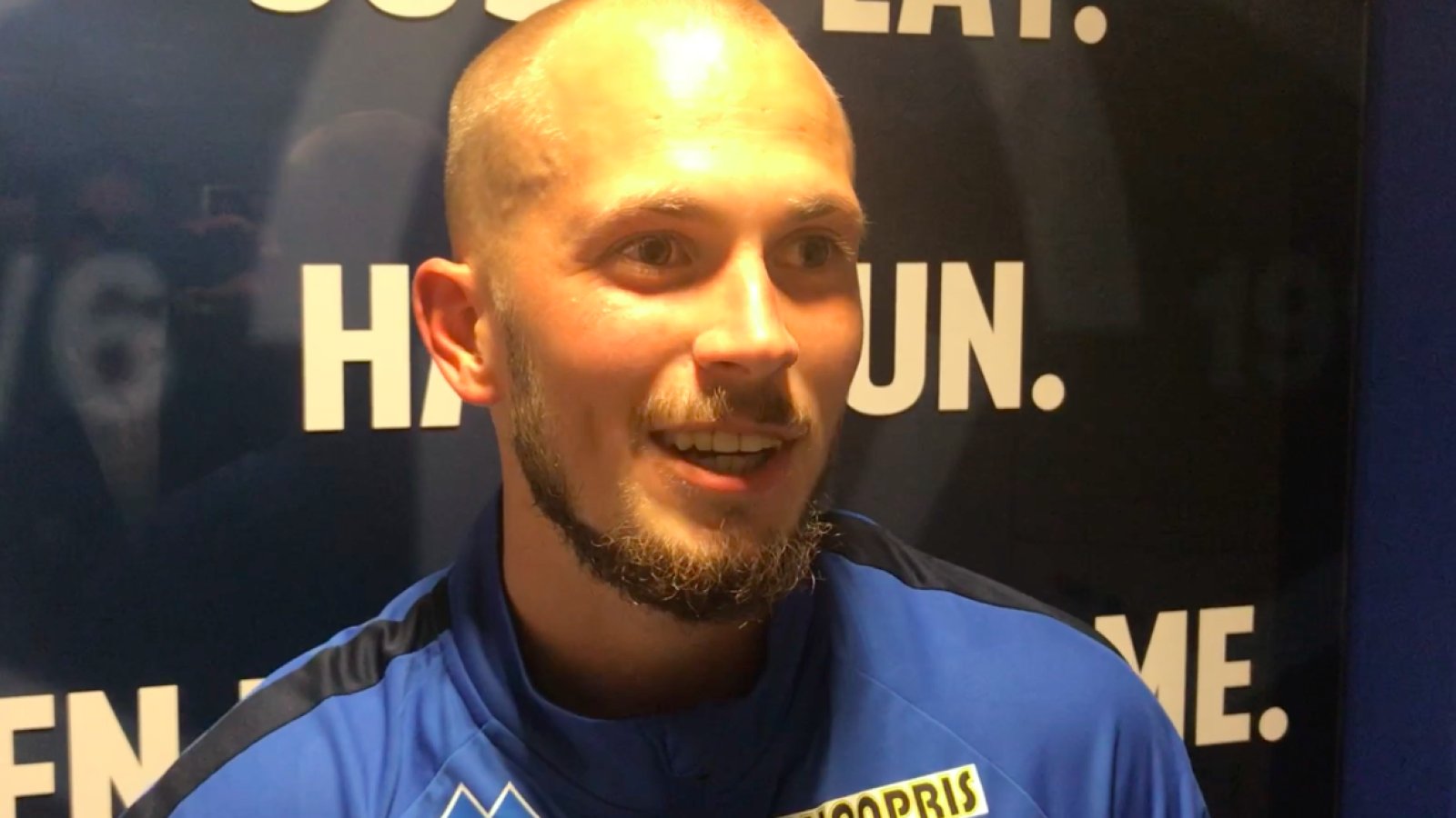 Tremålsscorer Eirik Hestad var naturligvis en fornøyd kar etter seieren mot Glenavon torsdag. Video