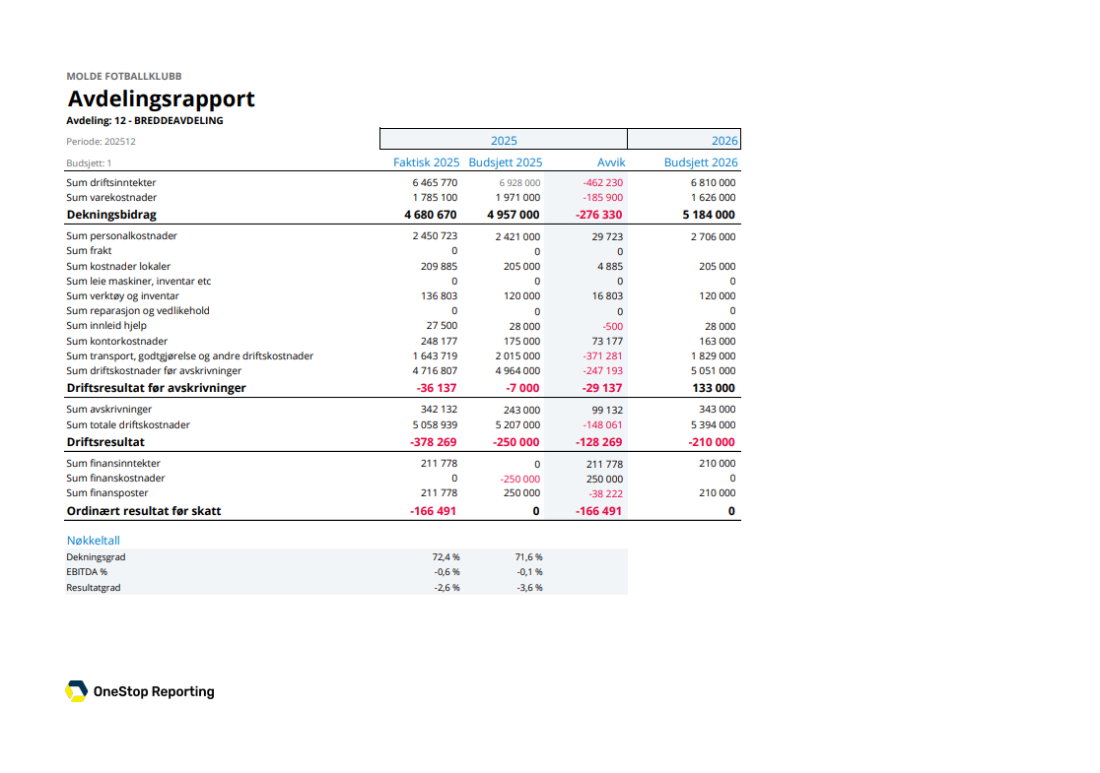 Her finner du regnskapet for 2025 og budsjettet 2026 i Molde Fotballklubbs breddeavdeling.