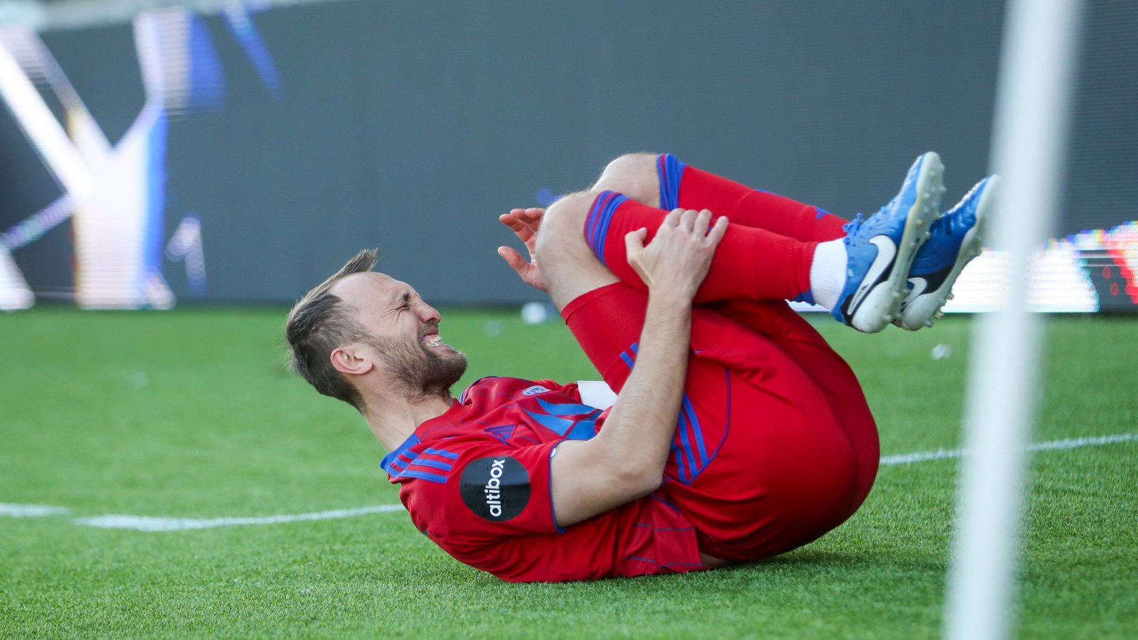 BILDET: Magnus Wolff Eikrem nede for telling etter en tøff takling. Foto: Trond R. Teigen / NTB